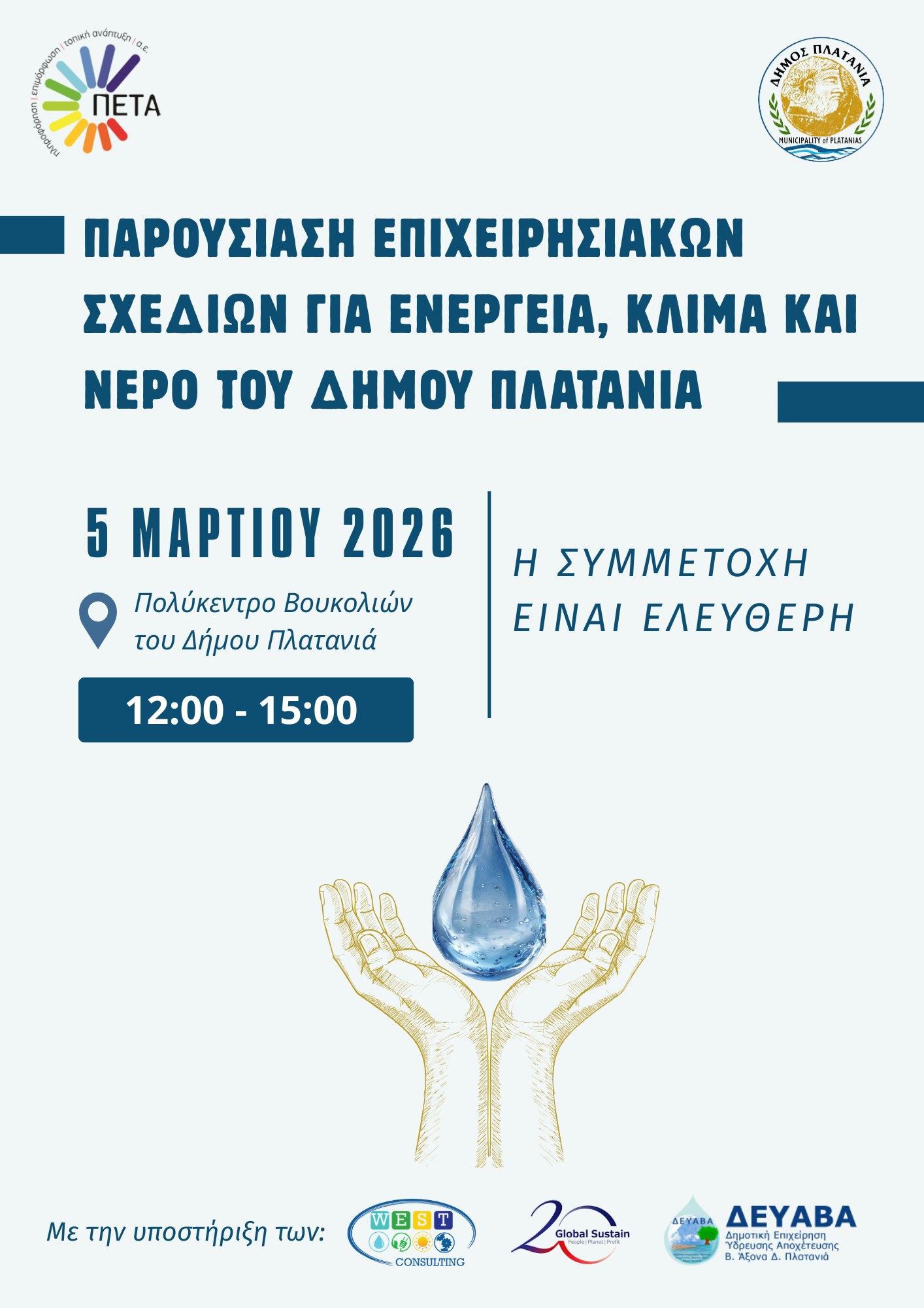 Σας γνωρίζουμε ότι οι Παραγωγοί του Δήμου Πλατανιά (ΔΕΜουσούρων, Βουκολιών, Πλατανιά & Κολυμβαρίου), οι οποίοιλόγω της Ανεμοθύελλας της 11 ης Ιανουαρίου 2026, υπέστησανζημιές σε εσπεριδοειδή και αβοκάντο, μπορούν να δηλώσουν τηζημιά στους Ανταποκριτές του ΕΛΓΑ στα ΔημοτικάΚαταστήματα Πλατανιά στο Γεράνι, Μουσούρων στον Αλικιανόκαι Κολυμβαρίου στο Κολυμβάρι, έως την Δευτέρα26/01/2026, κατά τις εργάσιμες ημέρες και ώρες.ΑΠΑΡΑΙΤΗΤΑ […]